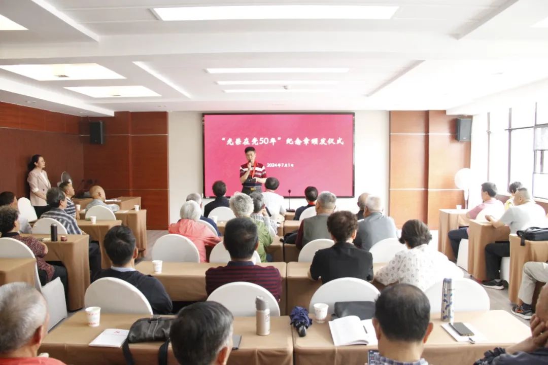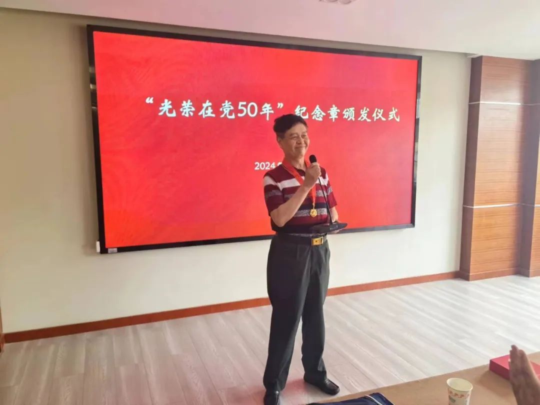 一名党员就是一面旗帜,就是一个标杆。“光荣在党50年”纪念章,既体现了党中央对党员的关怀和激励,更铭刻着党员熠熠生辉的奋斗足迹和勇于担当的为民精神。五十载峥嵘岁月,五十载栉风沐雨,五十载风雨兼程,他们一路走来,初心不改,使命不移。“雄关漫道真如铁,而今迈步从头越”。站在中国共产党成立103周年的历史节点上,让我们共同向“光荣在党50年”的党员深情致敬。让“在党言党、在党爱党、在党忧党、在党为党”的光荣传统赓续传承。