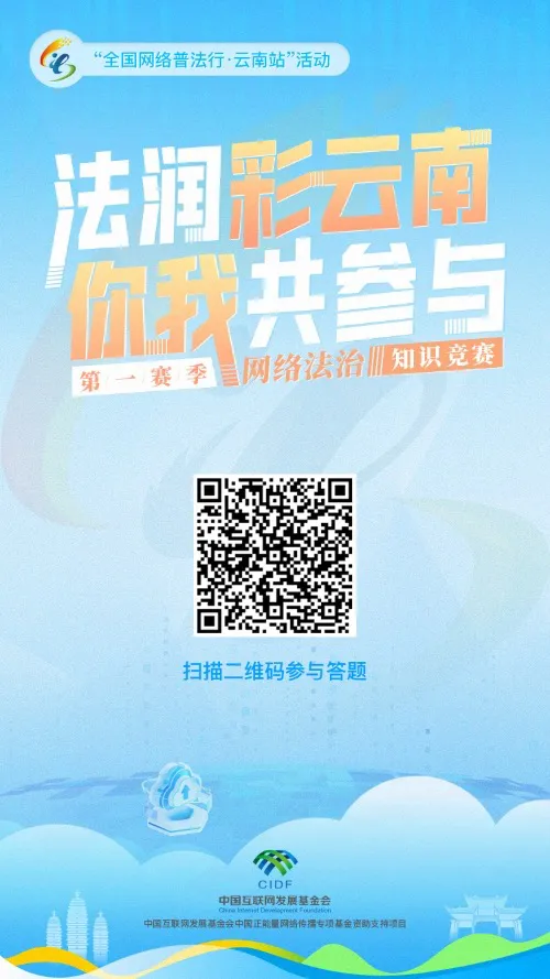 万物互联的时代,网络空间已经成为亿万民众共同的精神家园,为助力平安云南、法治云南建设,提高广大网民的网络法治观念和基层网络法治素养,7月1日,“全国网络普法行·云南站”活动——“法润彩云南·你我共参与”网络法治知识竞赛第一赛季正式开启,动动手指,快来与全国网民Battle法治知识。