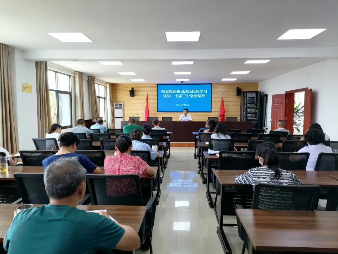 7月22日,西双版纳州司法局召开全体干部职工大会,传达学习习近平总书记在党的二十届三中全会上的重要讲话精神,传达学习《中共中央关于进一步全面深化改革、推进中国式现代化的决定》及全会公报精神。
