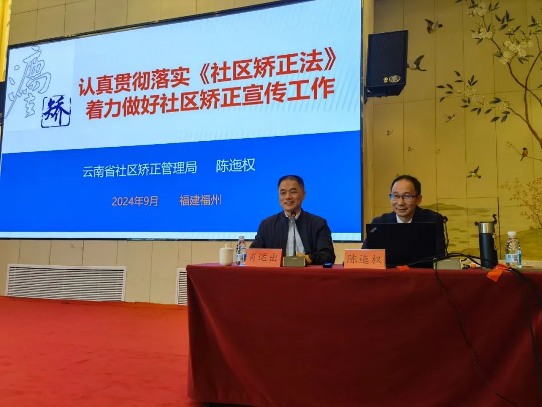 9月23日至27日,全国社区矫正工作培训班在福州举办,云南省社区矫正管理局在培训班上作信息化业务协同经验交流。根据司法部安排,云南省司法厅社区矫正管理处(云南省社区矫正管理局)处长(局长)陈迤权在培训班上就《认真贯彻落实<社区矫正法> 着力做好社区矫正宣传工作》作专题授课。