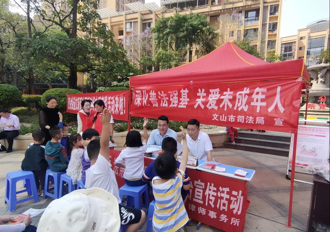 ▲2024年4月13日,云南七乡律师事务所到文新街社区华宇卧龙府开展普法宣讲活动。
