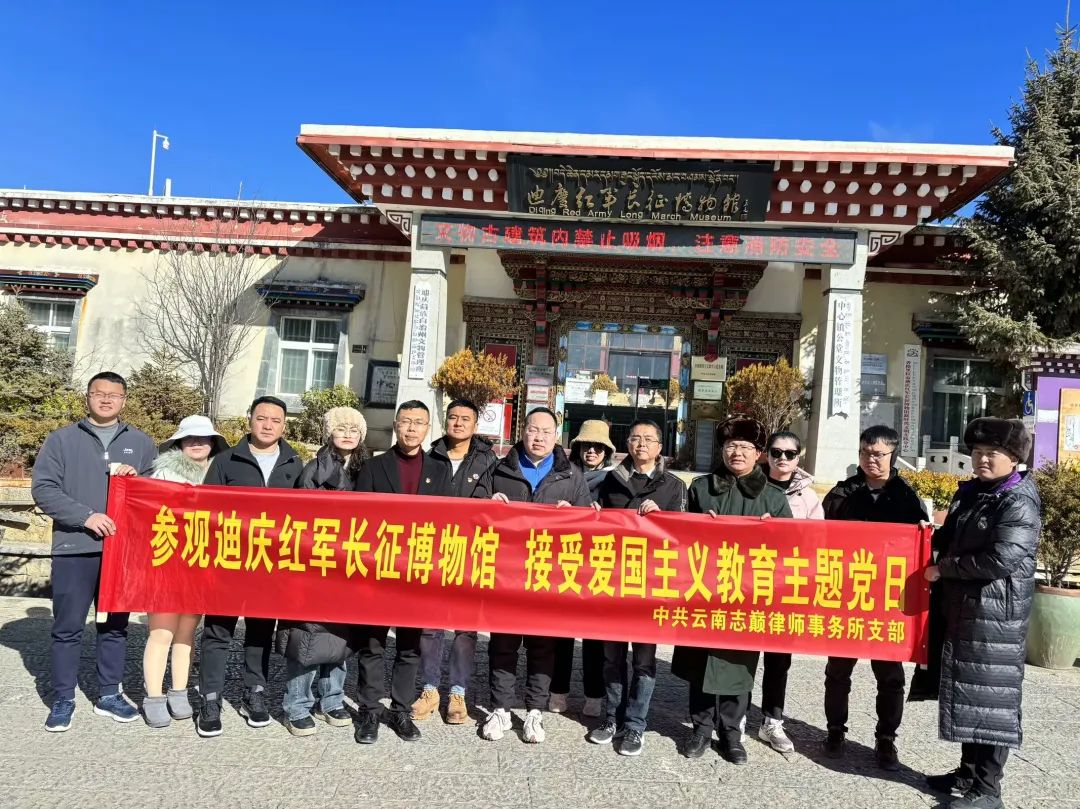 1月13日,云南志巅律师事务所党支部组织律所全体人员到迪庆州红军长征博物馆(原香格里拉中心镇公堂)参观,现场观摩了雪山草地的铭记、爬雪山过草地、红旗卷起农奴戟、迪庆高原新面貌等展厅的图文、实物陈列以及场景再现,了解了红二、六军团长征过迪庆的感人故事。“悠悠爱国情,拳拳赤子心,关于爱国,短短两字,却意义非凡,弘扬爱国主义精神从来不只是一个口号,而是一个真真切切的付出和行动,如何弘扬爱国主义精神,怎样成为一名让党和人民都满意的律师,我认为这是每一个律师都应该追求并努力实现的目标。”云南志巅律师事务所罗彦律师说。