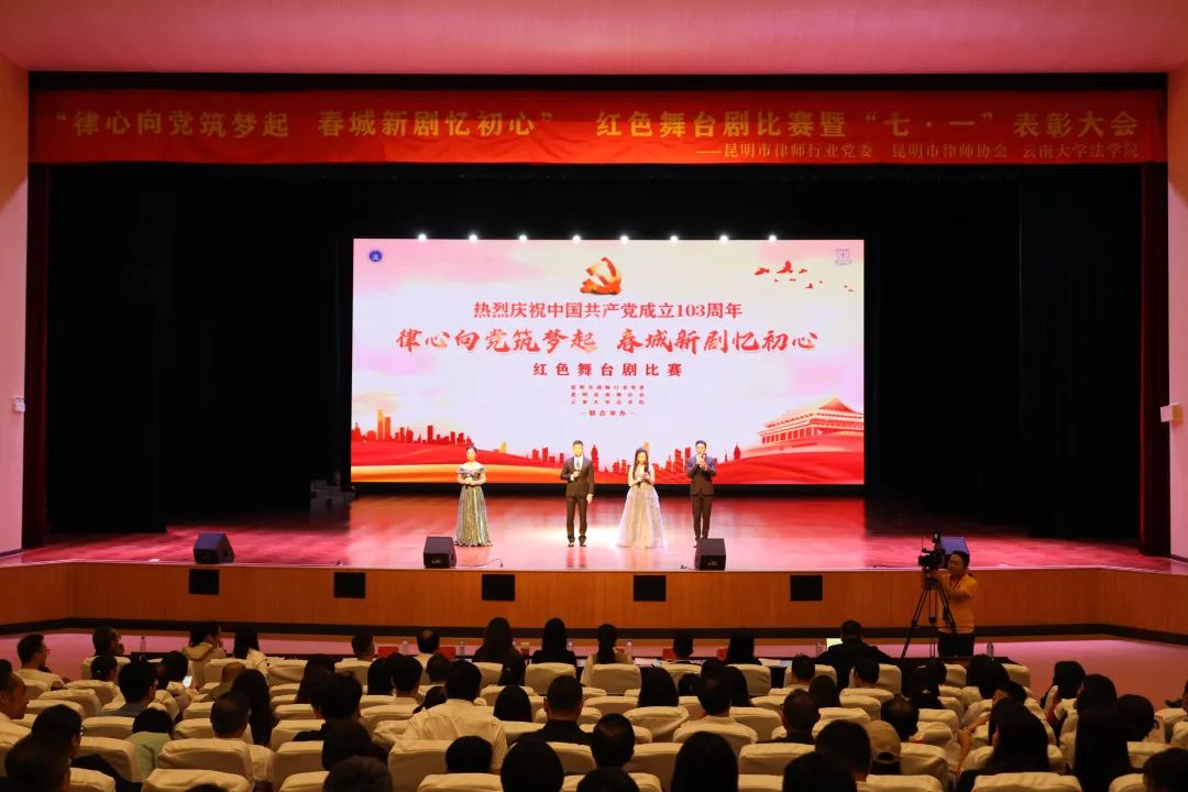 ▲2024年6月29日,昆明市律师行业党委、昆明市律师协会、云南大学法学院联合举办的“律心向党筑梦起 春城新剧忆初心”红色舞台剧比赛在云南大学呈贡校区举办。