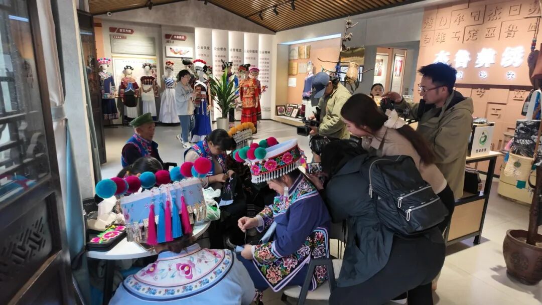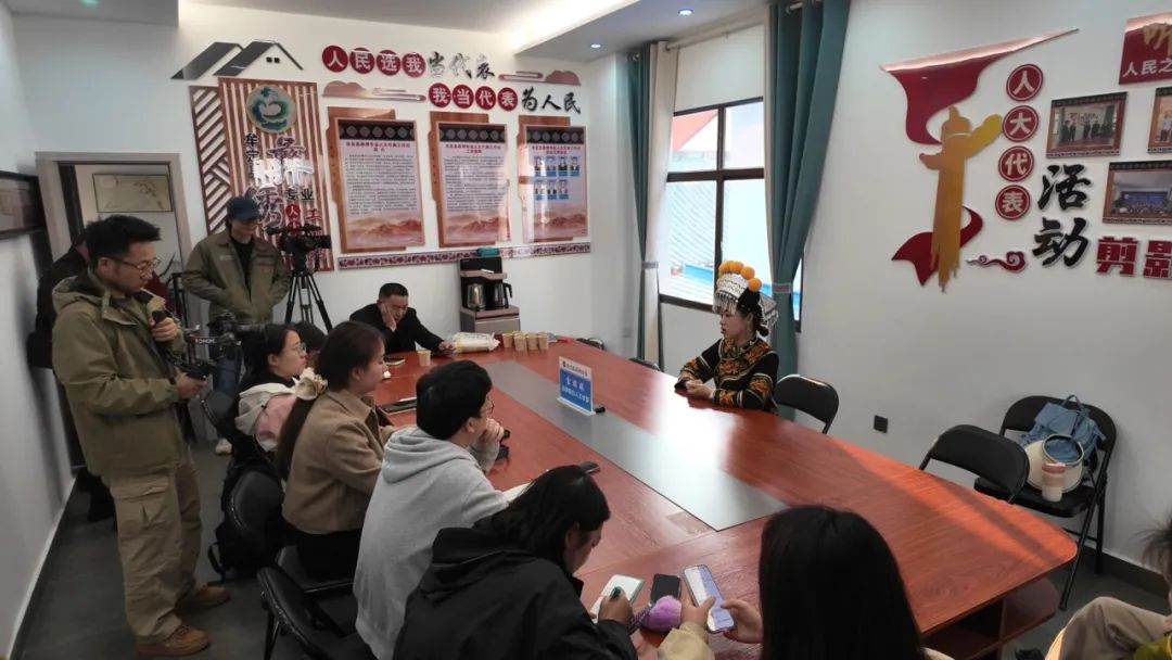 在法律明白人金瑞瑞工作室,媒体记者们与全国人大代表、法律明白人金瑞瑞开展深入座谈交流,用镜头和笔触记录金瑞瑞为员工调解家庭矛盾纠纷,运用法律维护企业权益,带领绣娘在家门口唱着歌、带着娃、绣着花、养着家致富的生动故事。