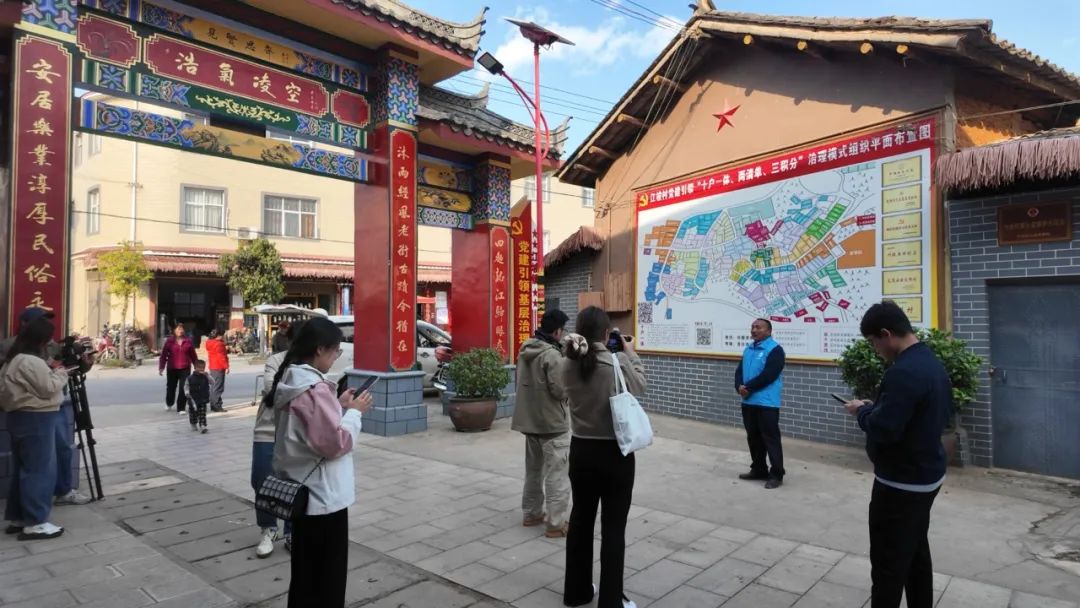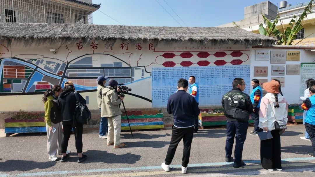 记者们在古岩村党总支书记的带领下,深入古岩村的街头巷尾进行参观采访,探索以“小户长”撬动基层“大治理”、“十户一体”共建共治共享模式,聚焦古岩村党建引领“十户一体”的基层治理模式如何引领群众共建共治共享,让更多发展成果惠及群众。