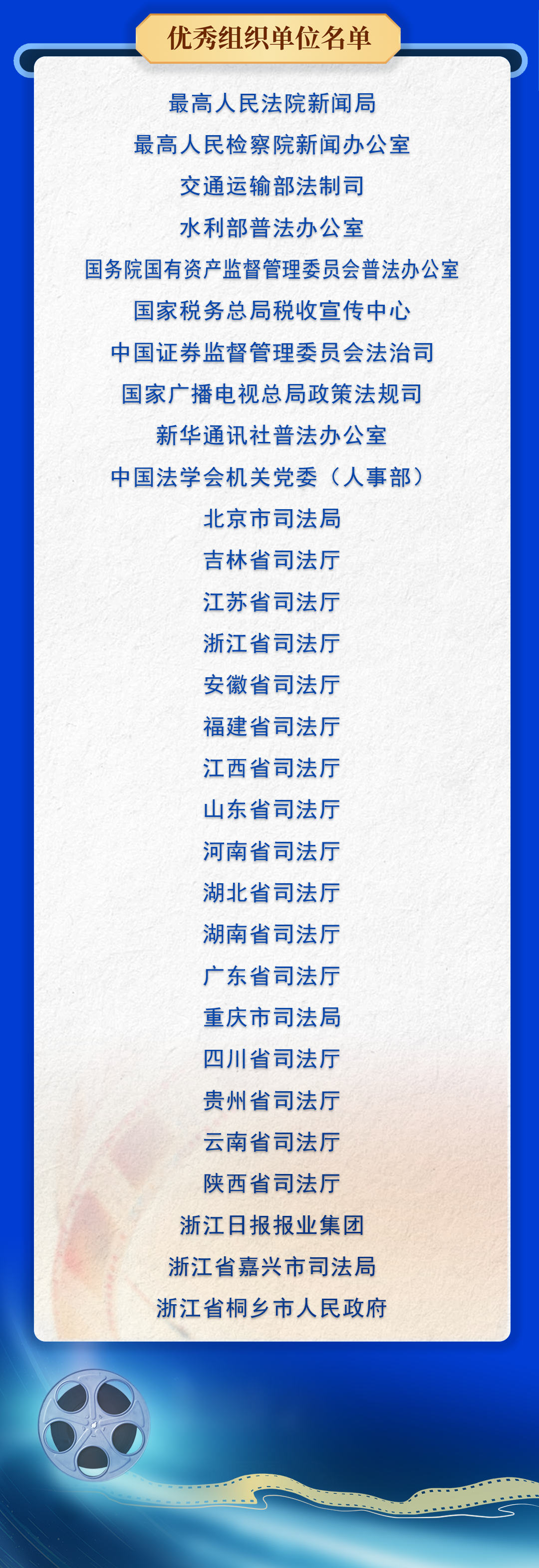 12月19日,第十九届全国法治动漫微视频作品征集展播活动结果在浙江省嘉兴市桐乡市揭晓。此次活动评选出100部优秀作品,21部最佳单项作品,推选出30家优秀组织单位。