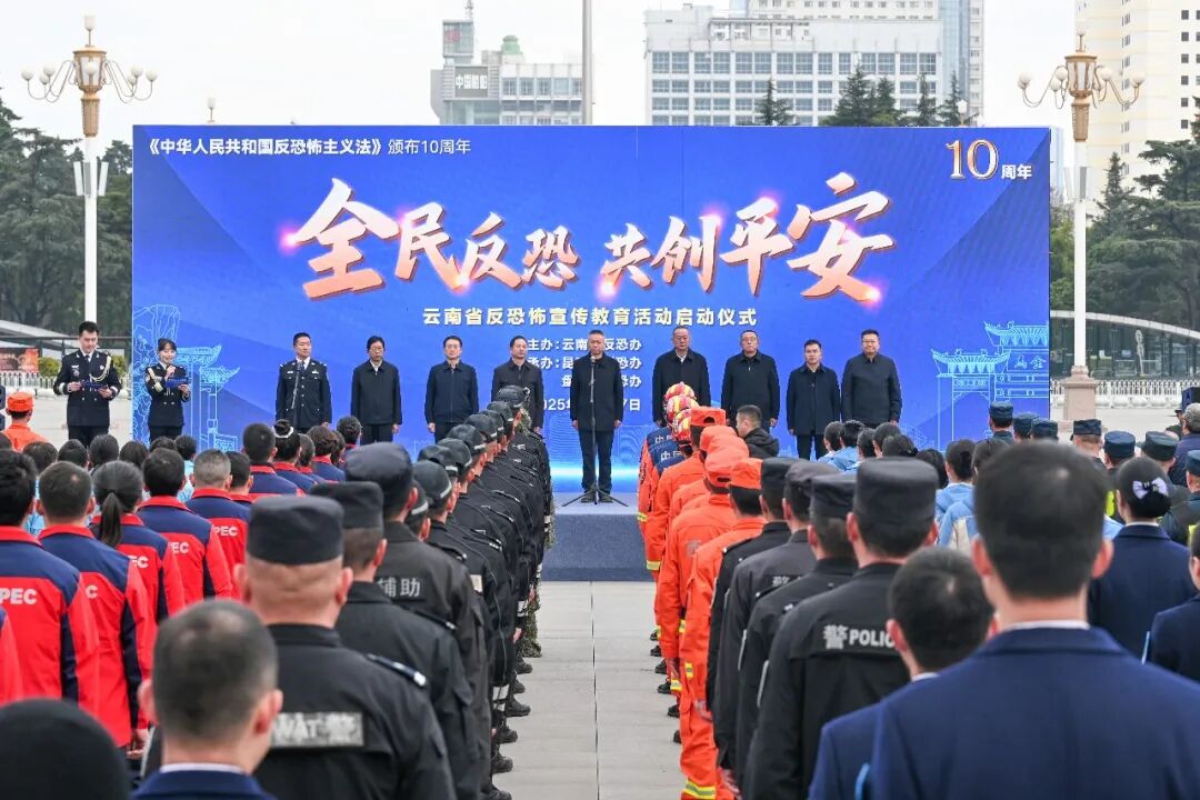 12月27日,正值《中华人民共和国反恐怖主义法》颁布10周年之际,云南省反恐办在昆明举行2025年“全民反恐 共创平安”反恐怖宣传教育主题活动启动仪式,旨在广泛动员全社会力量参与支持反恐工作,扩大反恐怖宣传教育覆盖面,营造“全民反恐、共创平安”的浓厚社会氛围。省公安厅党委委员、副厅长、省反恐办常务副主任昝霖出席仪式并讲话,宣布活动正式启动。