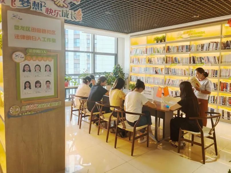 工作室完善功能配套,达到“五个一”全配备,即一支队伍(“法律明白人”与社区法律顾问联合办公)、一套制度(制度规范公示)、一套学习教材(包括“法律明白人”常用法律知识书籍和学习笔记)、一个“法律图书角”、一个培训室。在做到“标识、标牌、标语”三齐全的基础上,展示“法律明白人”主要工作职责等制度,设置摆放法律相关书籍的“法律图书角”供“法律明白人”和居民群众查阅学习,定期邀请法官、检察官、律师等法律专家到培训室为“法律明白人”充电赋能,全方位提升“法律明白人”综合素养和为民服务能力。