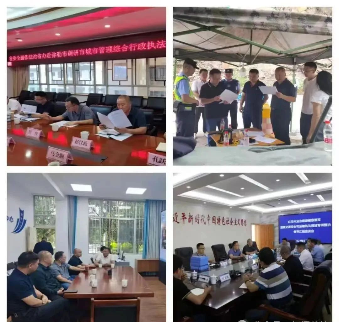 三是着眼问题解决难题。针对不同县(市)不同部门督察因地制宜,深入一线开展实地督察。2023年,红河州将“一规划两方案”中期评估工作与专项督察充分整合,组织开展“两规划两方案”中期评估和“一行动”实地督导,把中期评估+实地督察+专项督察一体推进,通过召开座谈会、个别访谈、查看台账、深入乡村实地走访等方式,对全州13县(市)及相关州级部门开展督察,高效完成年度“两规划两方案”中期评估及专项督察工作任务,既压实法治建设责任又抓实法治督察效果。6年来,红河州州县两级共组织专项督察78 次,综合督察65次,书面督察160余次。