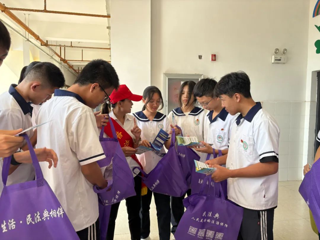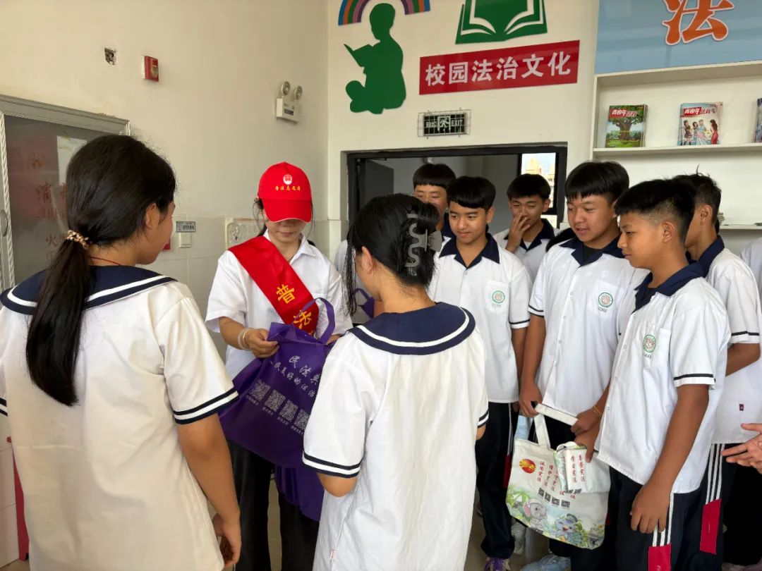 “遇到校园欺凌怎么办?”“发现可疑毒品该如何处理?”互动问答环节变身“法治头脑风暴”,孩子们举手如林,妙语连珠。工作人员趁热打铁,发放《青少年法治护航手册》《禁毒防艾漫画读本》《民法典漫画书》等宣传资料,每一份打包好的法治宣传袋里装的不仅是宣传册,更是满满的法治“护身符”。