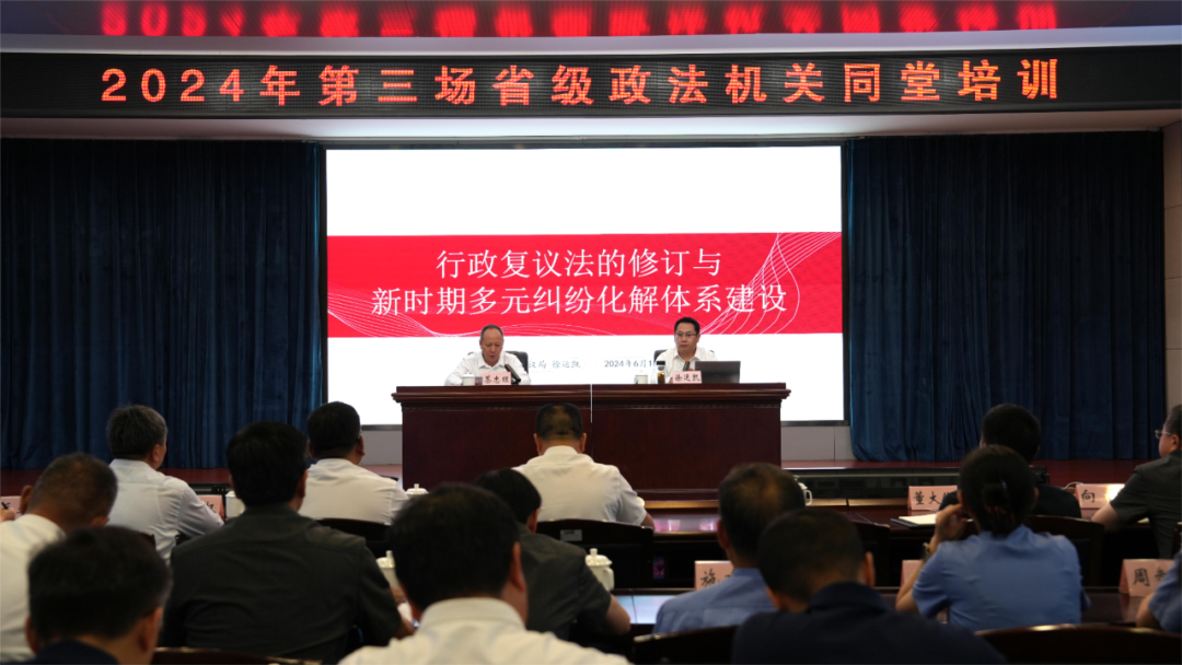 6月13日,2024年第三场省级政法机关同堂培训在省司法厅举行,司法部行政复议与应诉局副局长徐运凯围绕“行政复议法的修订与新时期多元纠纷化解体系建设”主题作专题辅导。