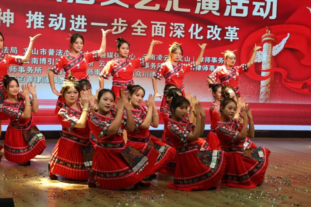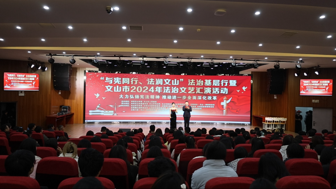 公安民警带来的《反诈说唱》将现场氛围点燃,歌曲《文山》、小品《家暴》《网贷诈骗》《新起点》等节目轮番上演,精湛的表演让观众连连叫好,也让普法知识深入人心。