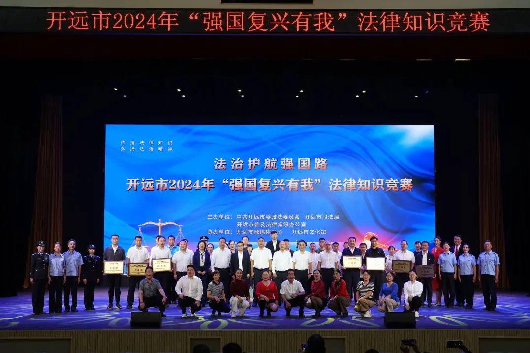 市委政法委、市司法局、市普法办等多家单位联合举行2024年“强国复兴有我”法律知识竞赛。组织了7支代表队参赛,全市各单位法治工作人员和140名来自基层的村(社区)“法律明白人”代表共300余人观看比赛。知识竞赛活动形式“新”、宣传内容“广”、赛场气氛“活”、竞赛影响“深”,带动了“台上台下”齐参与。台上通过“法律知识必答题”、“法律知识抢答题”、“现场情景处置题”、“法治工作才艺展示”四个环节检验基层法治工作人员水平,台下采取观众互动竞答开展生动鲜活的法治课堂,有力推动基层法治工作队伍主动学法,引导广大群众积极学法。