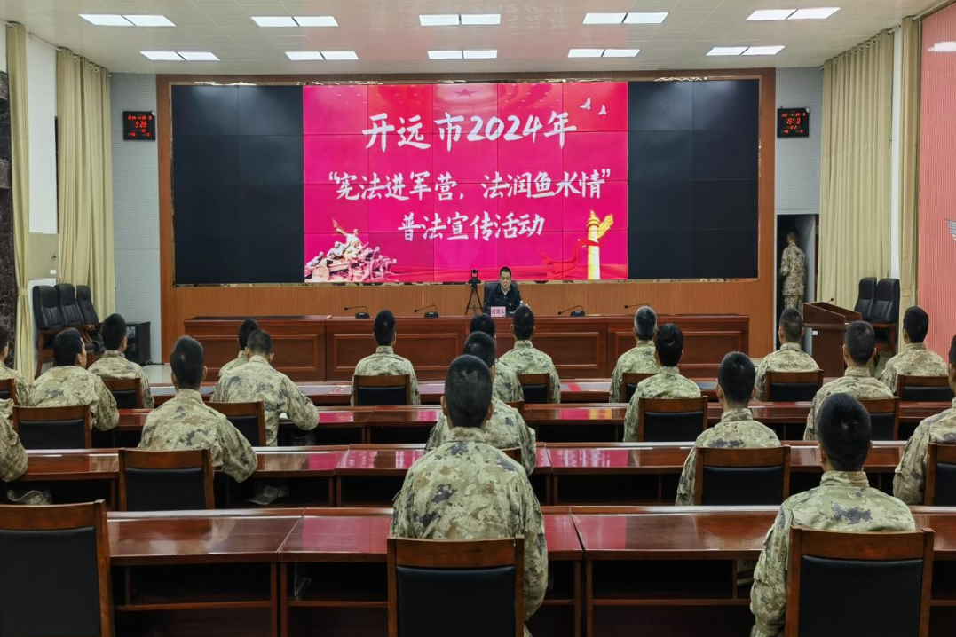 市退役军人事务局到驻开某部开展“宪法进军营 法润鱼水情”普法宣传活动,通过以案释法,深入阐释宪法、军人地位和权益保障法、退役军人安置条例等与军人军属相关的法律法规及政策。