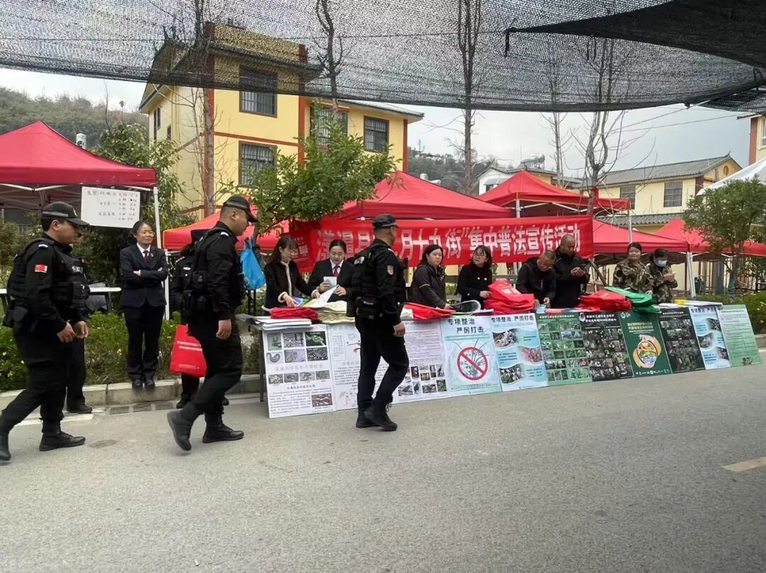 工作人员通过重点集中“摆摊”、悬挂宣传横幅、发放宣传资料、解答法律咨询等方式,向过往群众宣传消防法、森林法、《云南省森林防火条例》等法律法规,同时结合生活中发生的典型案例,用通俗易懂的少数民族语言“以案释法”,引导群众安全用电、用火。