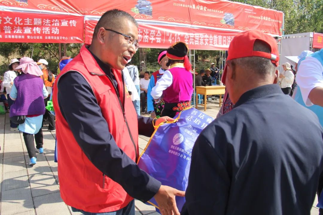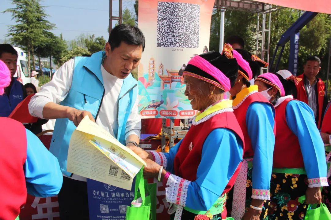 为持续推动深化普法强基“法律六进+ N”法治宣传系列活动和全民国家安全教育走深走实,切实增强全民国家安全意识和基层群众法律素养,4月10日,丽江市司法局、古城区司法局、云南泰联律师事务所、云南雪山公证处、云通司法鉴定中心(丽江站)组成的普法小分队,走进2025年金山街道民俗文化系列活动现场,开展主题法治宣传暨“4•15”全民国家安全教育日普法宣传。