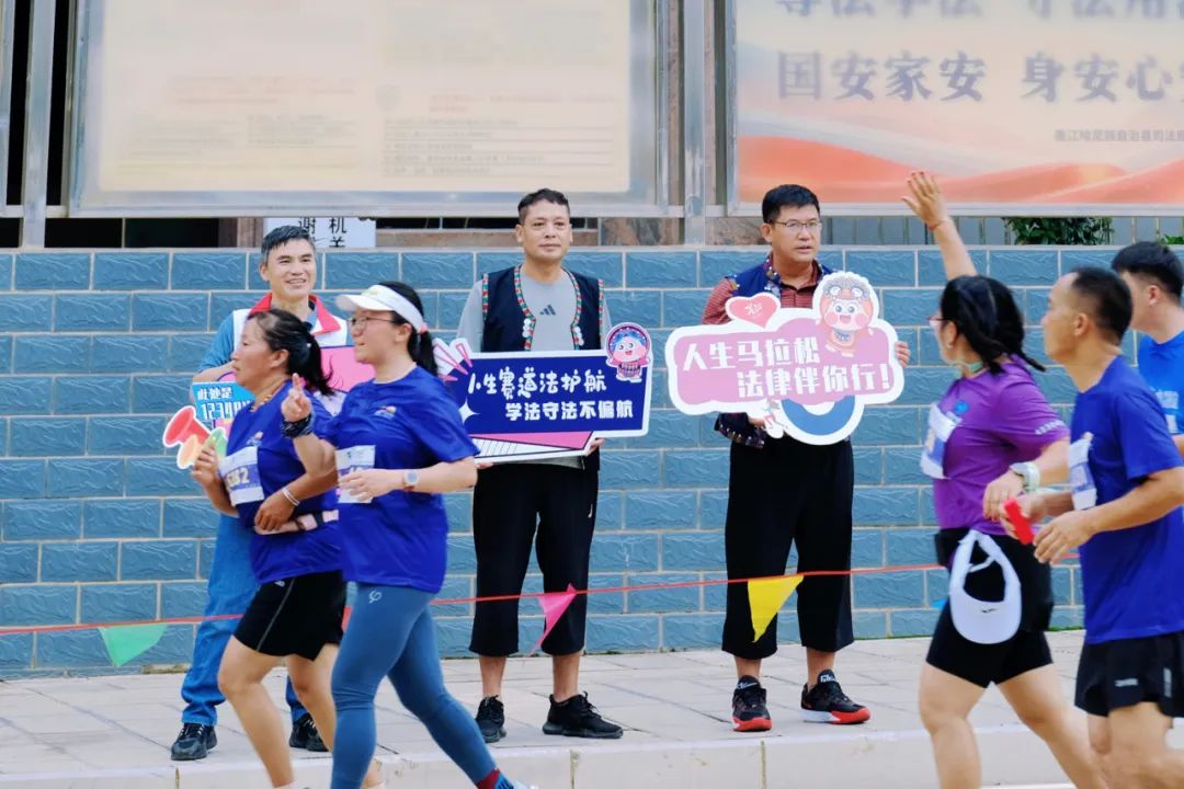 “此处是12348米,加油!跑出法治加速度,‘12348’法律服务热线来助力!”在近日举办的2025普洱墨江半程马拉松比赛现场,一支由司法行政干警、法律服务工作者、普法志愿者组成的“法治助威团”,手持创意普法手举牌,成为赛道旁亮丽的风景线。