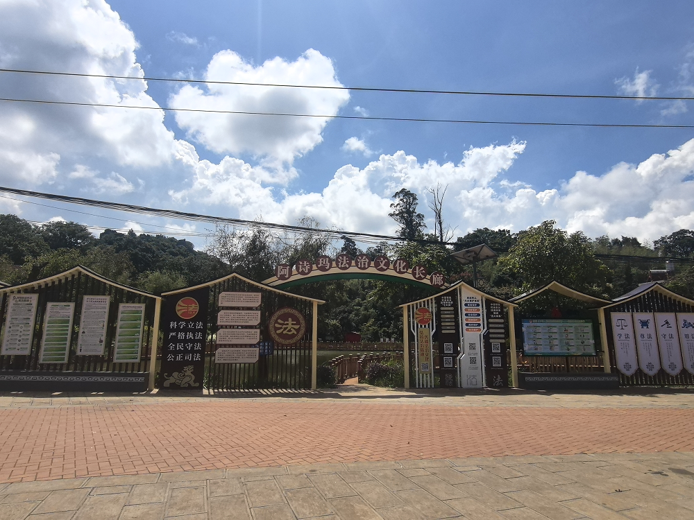 阿诗玛法治文化长廊位于长湖民族团结广场,整体设计美观大方、主题鲜明。法治文化长廊以图文并茂的形式,围绕与群众生活密切相关的法律法规,如“十一个坚持”推进全面依法治国、“十六字方针”等,设置了多个板块。每个板块都配有生动形象的漫画、真实典型的案例以及详细的法律条文解读,使法律知识变得通俗易懂。