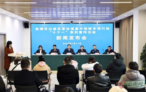 据悉,1月17日,云南省曲靖市沾益区举行普法强基补短板专项行动“十个一”系列宣传活动新闻发布会,沾益区围绕普法强基补短板专项行动目标、普法重点、普法形式、普法阵地建设等推出“十个一”创新举措,普法工作具体化、接地气,落地见效。