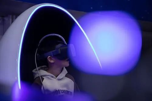游客在哈尔滨冰雪元宇宙体验中心体验虚拟现实(VR)冰滑梯 新华社记者 张涛 摄