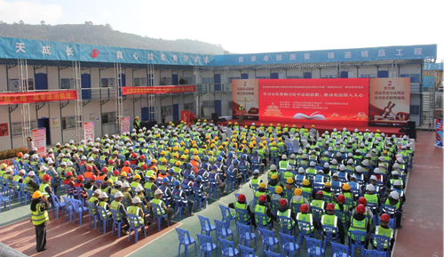 12月4日上午,省住房城乡建设厅以第十二个“国家宪法日”宪法宣传为契机,联合云南省建筑业协会将“宪法课堂”搬进建筑业企业和建筑工地,在中天建设集团承建的新希望·锦官府项目开展以“学习宣传贯彻习近平法治思想,推动宪法深入人心”为主题的宪法宣传活动。300余名项目一线工友齐聚现场,在浓厚的氛围中学习宪法知识,强化宪法意识,弘扬宪法精神。