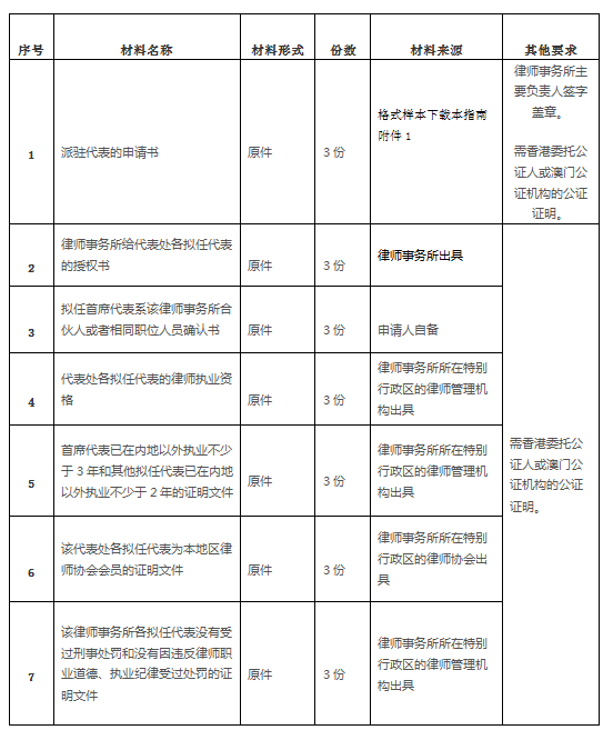 1.香港、澳门律师事务所驻内地代表机构代表申请执业: