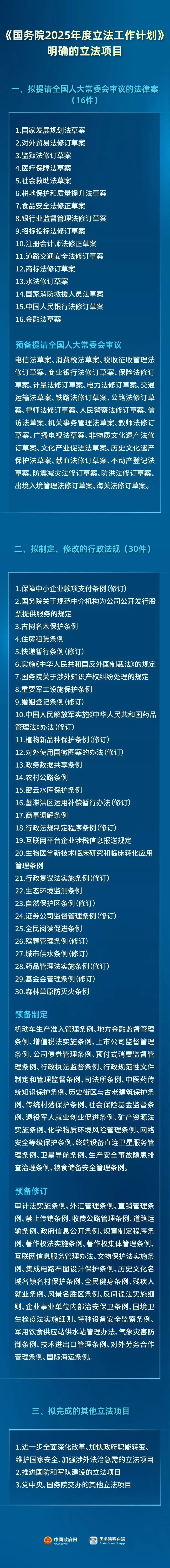 这些立法项目明确!国务院2025年度立法工作计划发布