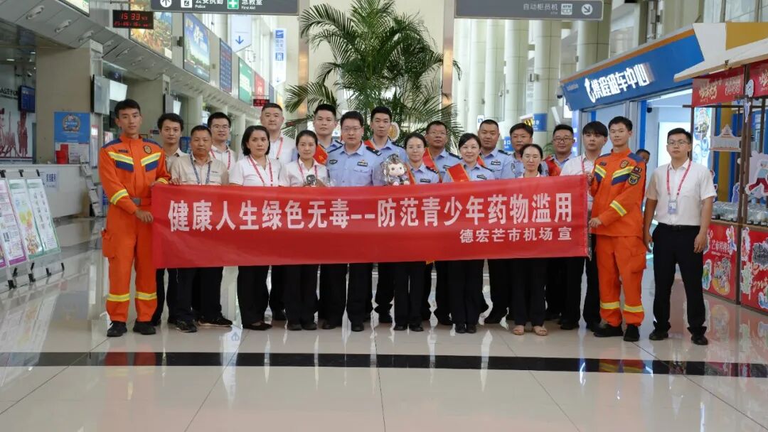 德宏芒市国际机场航站楼内,“青鹭”团队设置了多个宣传展位。通过展示毒品模具、吸毒工具和器官模型,向旅客直观呈现毒品危害。创新的“有奖问答转盘”吸引众多旅客参与。
