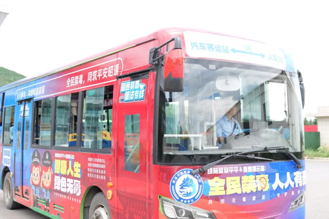 仲夏的昭通城区,一辆辆印有红苹果警察吉祥物和“全民禁毒 人人有责”标语的公交车穿梭不息,这抹融合乡土情怀与法治力量的“苹果红”,正是昭通“禁毒普法专线”的独特印记。