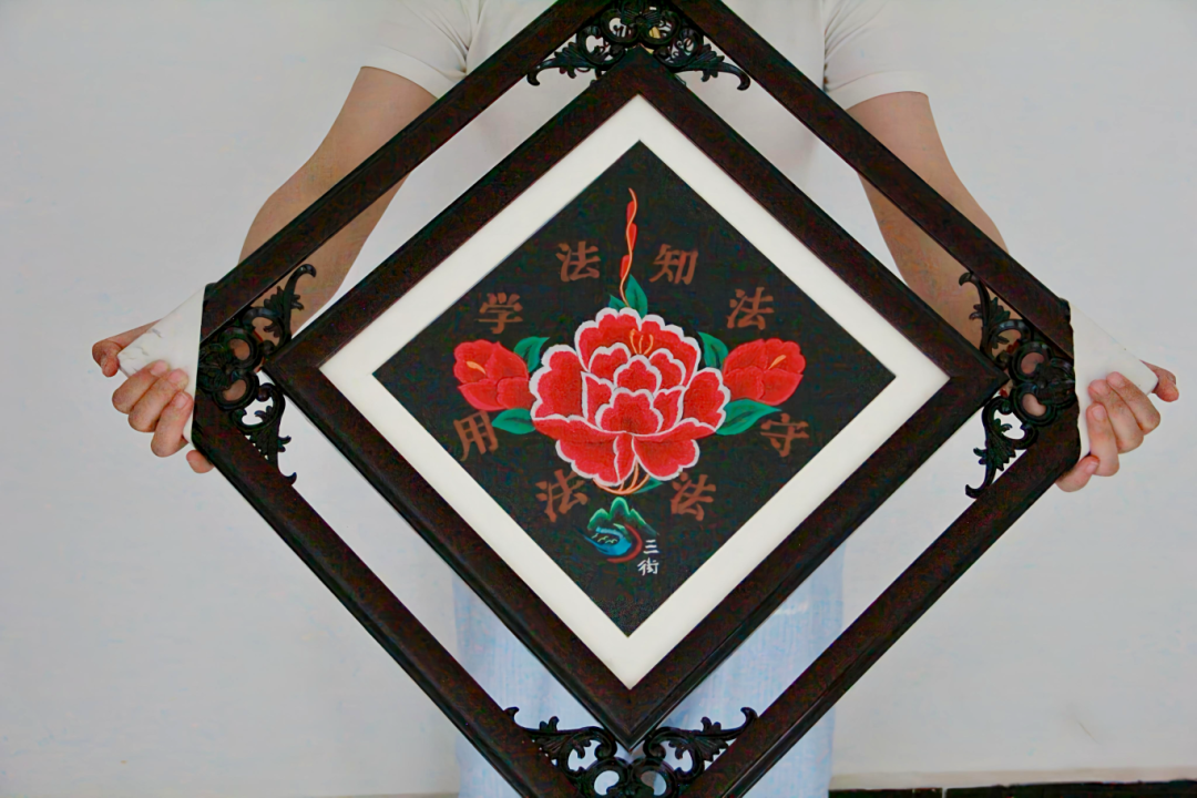 云南非遗中的彝绣是彝族文化的瑰宝,体现了彝族人民的生活方式、风俗习惯、民间信仰和审美情趣。以非遗为“体”,以法治为“魂”,楚雄市司法局现集中展示一批富有时代特征、具有地域特色、群众喜闻乐见的彝绣精品。