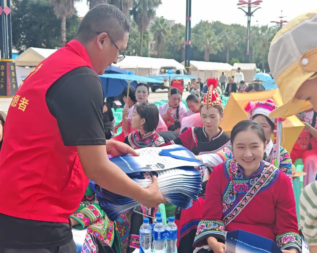 活动现场,工作人员向来往群众发放民法典与生活同行、旅游法知识问答、消费者权益保护法等实用普法读本,并特别定制了印有普法标语的文创小扇子、环保袋等宣传品发送给过往群众。同时,还穿插了法律知识有奖问答环节,题目贴近日常、形式轻松活泼,吸引众多游客尤其是小朋友踊跃参与,在互动中普及法律常识。