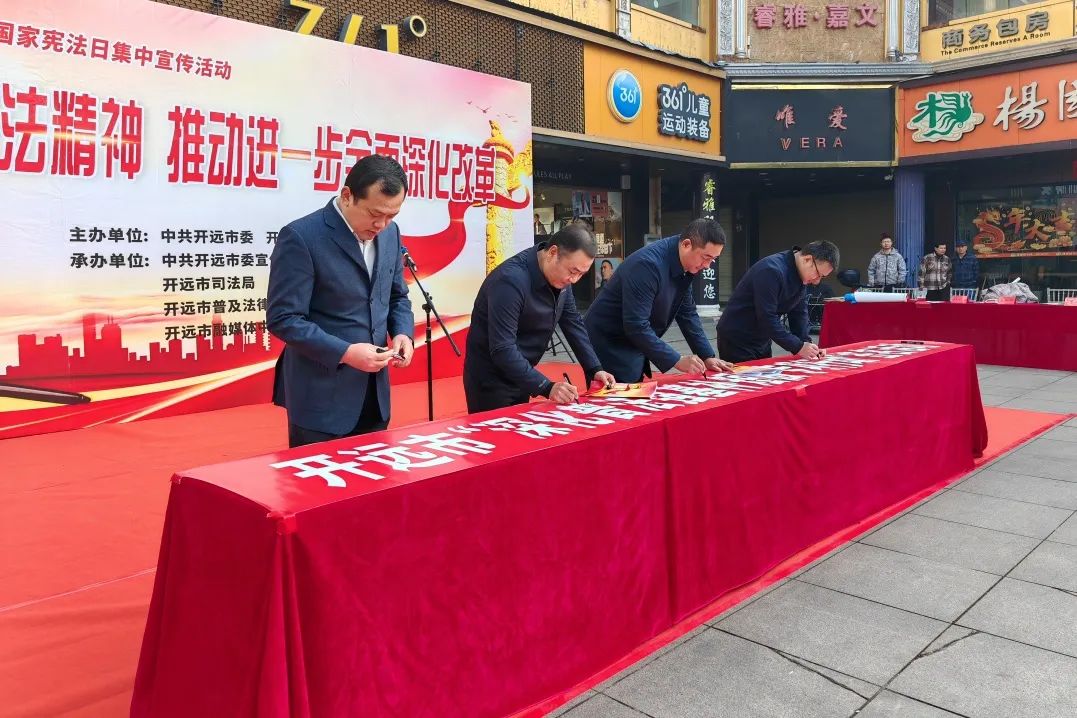 开远市于12月1日上午在衡泰广场开展2024年宪法宣传周启动仪式暨集中宣传活动,举行“深化普法强基补短板专项行动”签名活动,组织各普法成员单位开展2024年“宪法宣传周”集中宣传,全市普法成员单位及城区2个街道办事处分管普法工作的领导和工作人员、律师、公证员、普法志愿者等共200余人参加启动仪式。