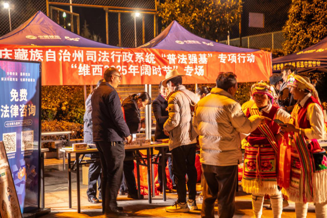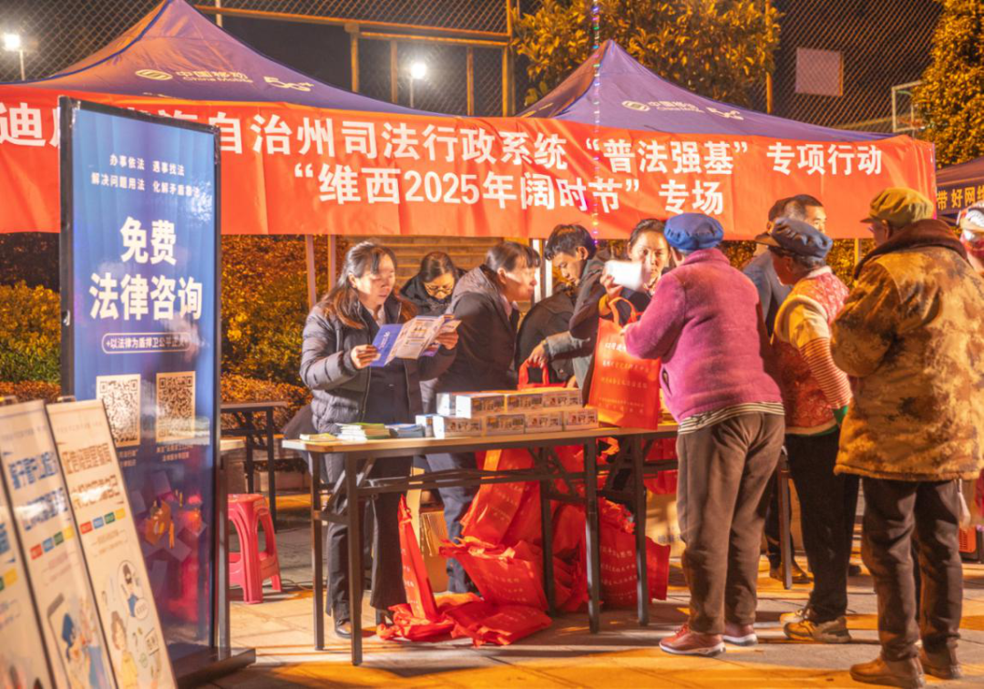 12月18日至19日,迪庆州维西县2025年“阔时节”系列活动在县民族团结广场举行。期间,按照迪庆州司法行政系统深化普法强基补短板专项行动既定方案,迪庆州、维西县司法局联合开展“阔时节”专场普法活动。