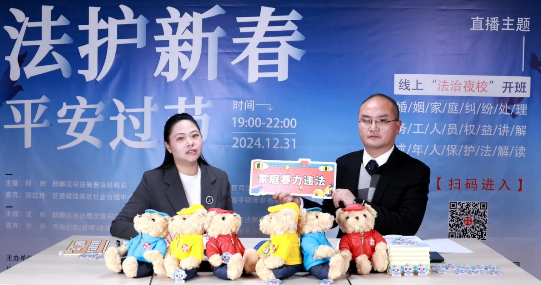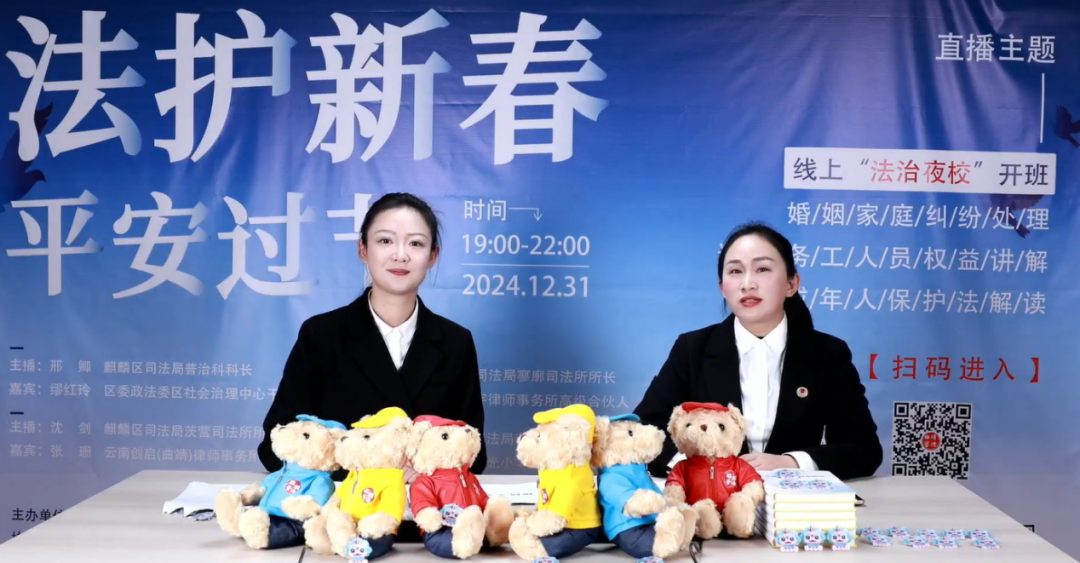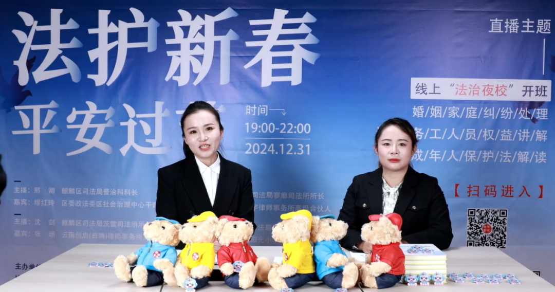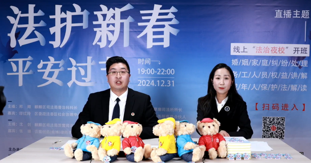活动由曲靖市委政法委、市司法局牵头主办,麒麟区委政法委、区司法局、区教体局、茨营镇政府、寥廓街道办事处、潇湘街道办事处联合协办,邀请区委政法委工作人员、区司法局工作人员、专职律师及学校骨干教师作为嘉宾,围绕“麒麟区政法工作成效”“婚姻家庭纠纷处理”“返乡务工人员权益保护”“未成年人保护法”等四个方面的内容进行深入浅出的讲解,旨在通过线上直播的形式,普及法律知识、提升群众法治意识,共同营造平安祥和的节日氛围。本场直播在“云南政法微博号”“平安曲靖抖音直播间”“曲靖普法微信视频号”“麒麟政法微信视频号”“麒麟普法微信视频号”“麒麟普法抖音号”等平台同步播出,共计5万余人观看,点赞数超过70万,取得良好的效果。