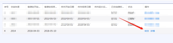3、点击右侧“转发”按钮,进行会费缴纳期限转发,(转发目的是各州市根据本州市情况限制律所可以进行缴纳会费登记的起止日期)
