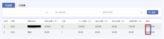 1、各州市律协登录系统,点击“会费管理”-->“会费核算”审核各律师事务所提交的会费缴纳信息,依次对团体会费和个人会费进行核算,同时核对上传的减免资料、交款单据及银行实际收款情况,核对无误,点击“确定”按钮,信息自动上报到省律协审核,待省律协审核通过,可以在“会费汇总”中查询。