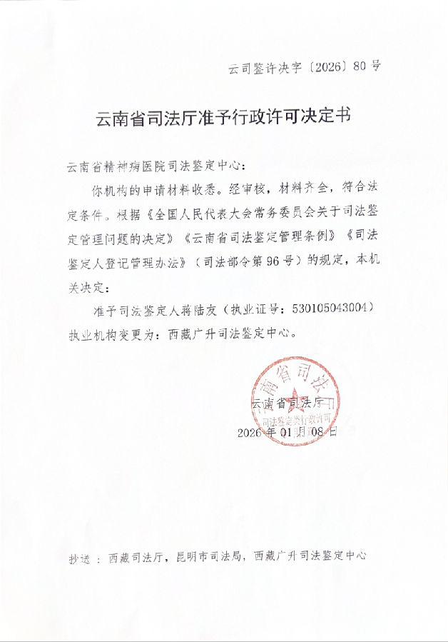 行政许可决定书(云司鉴许决字〔2026〕80号)