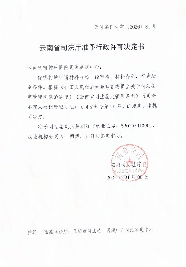 行政许可决定书(云司鉴许决字〔2026〕81号)